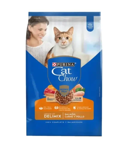 Cat Chow Adulto Delimix es una fórmula multi-proteica que busca darle variedad y vitalidad a la dieta de tu gato adulto. Está diseñado con la tecnología FORTI DEFENSE (o Defense Plus), combinando tres fuentes de proteína y nutrientes esenciales para mantener la fortaleza, la energía y, lo más importante, las defensas naturales de tu compañero felino.