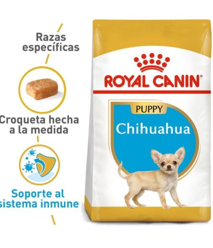 Alimento premium diseñado específicamente para cachorros de raza Chihuahua hasta los 8 meses de edad. Su fórmula de alta calidad aporta los nutrientes esenciales para un sano crecimiento, una digestión saludable y un pelaje brillante. Además, su palatabilidad está adaptada para el exigente apetito de esta raza.